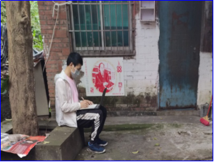 图1陈俊材同学屋外蹭网上课