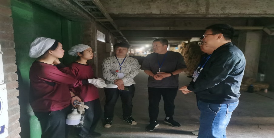 上午一行人分别前往五粮液公司502车间(制曲车间),看望了正在制曲生产线上认真工作的学生,详细了解学生实习岗位、实习内容、实习收获并督促学生做好实习笔记、实习过程中注意人身安全。