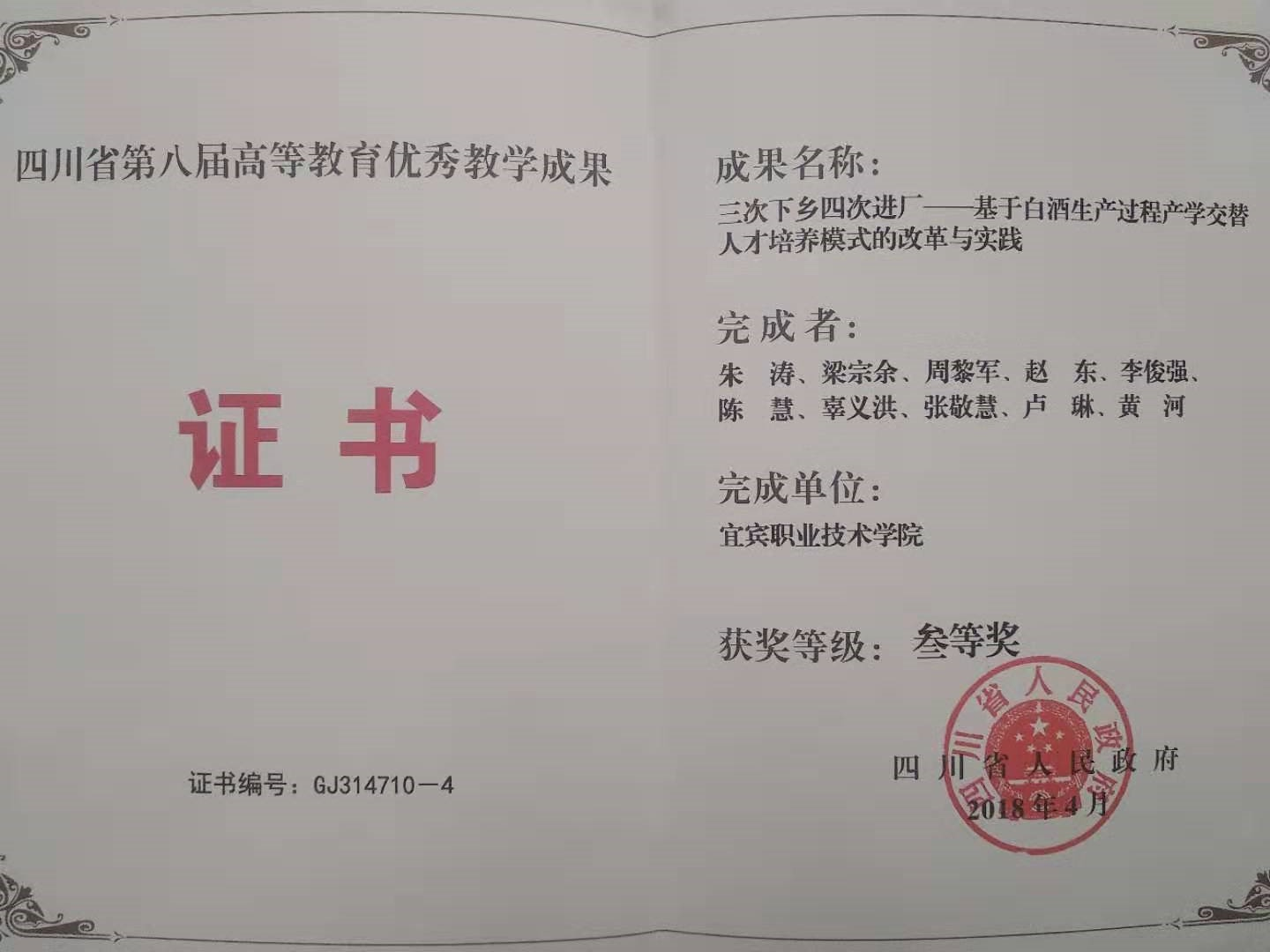专业获得四川省第八届高等教育优秀教学成果三等奖