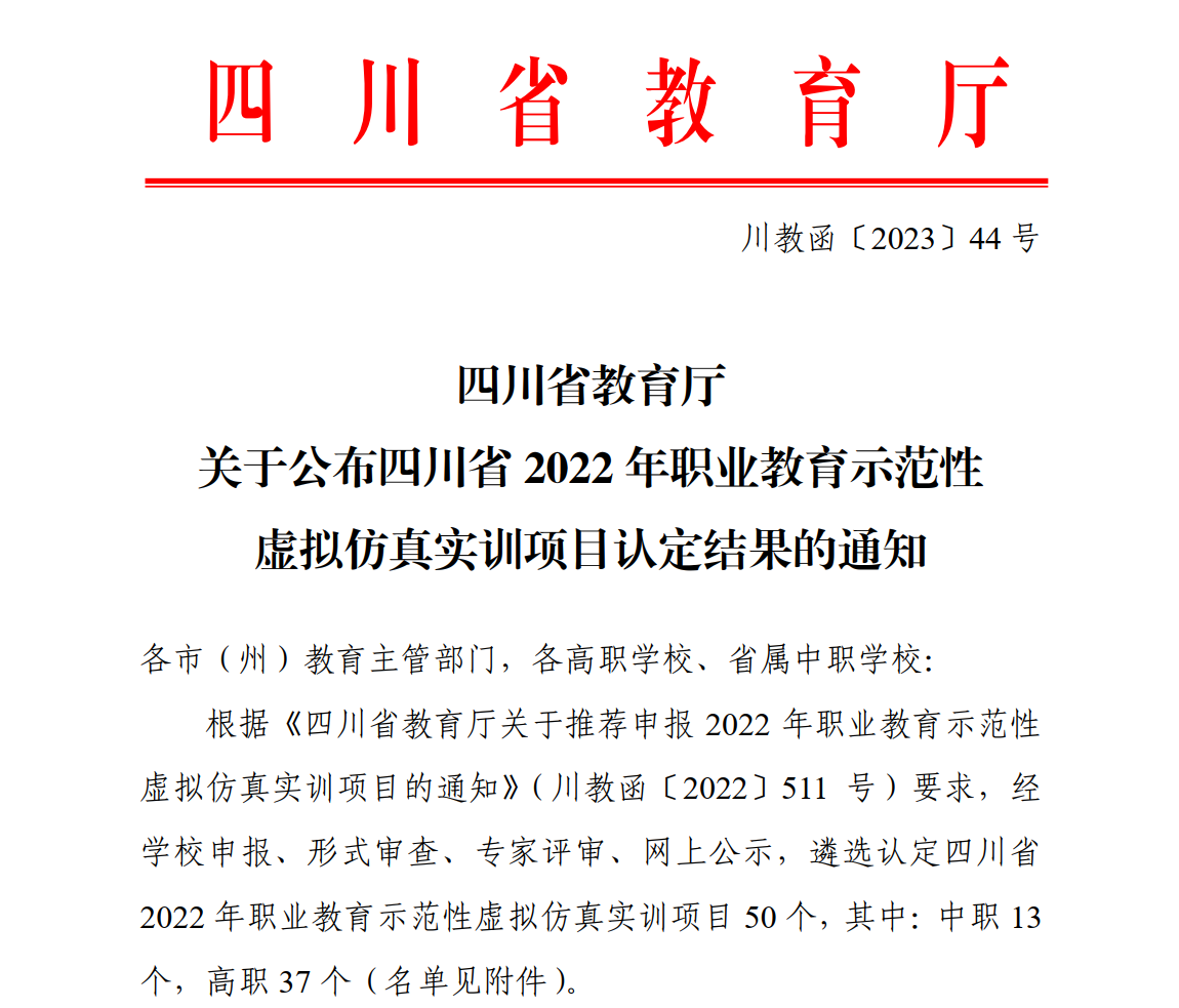喜报!我院虚拟仿真实训项目成功认定四川省2022年职业教育示范性虚拟仿真实训项目