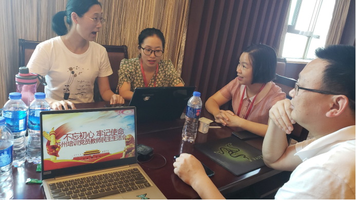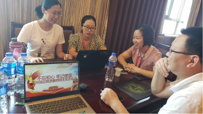 2020年730日中午,在苏州进行德国双元制师资培训的全体党员教师在苏州太仓娄东宾馆召开“不忘初心牢记使命”专题民主生活会,会议由总支宣传委员邓利主持,贺映光、李秀萍、江鹏、郭云霞、罗鸣、陈雪玲等六名同志全程参加了会议,并分别作了发言和表态。