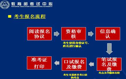 考生在网上完成个人注册后,依据以下工作流程完成报名工作: