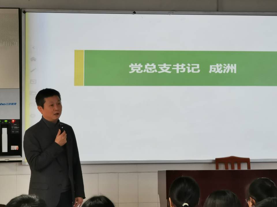 五粮食品学院党总支书记成洲给2021届毕业生提出了三点要求。一是要有家国情怀,在自己的道路上,一定要好好走,给师弟师妹们做一个好的榜样,更要做到自律,慎独;二是为了自身发展,要提升动力,挖掘潜力;三是强调招聘会的相关工作安排。最后期望大家牢记校训:鼎承大同,钵传天工。