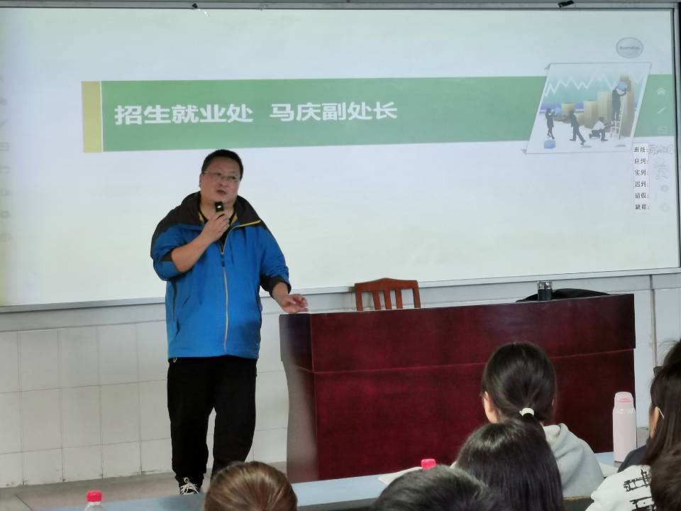 学院招生就业处副处长马庆结合自己多年的工作经验给2021毕业生讲了就业需要注意的问题以及第一个月工资的要怎么用等,并希望大家都能找到一份满意的工作。