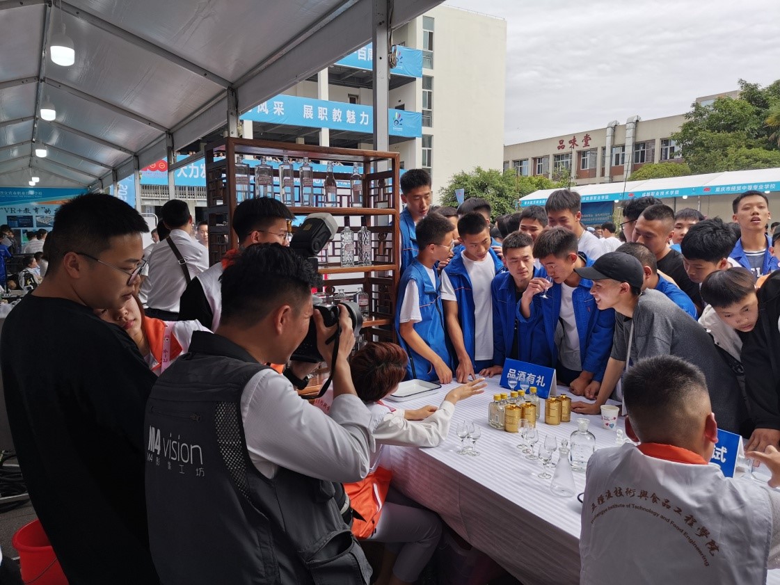 本次活动有四川省21个市州,重庆市12个区县共53所职业院校参加。宜宾职业技术学院五粮液技术与食品工程学院一直秉承着“打造酒都工坊,培养酒都工匠”的精神,到场进行职业技能和成果展示。