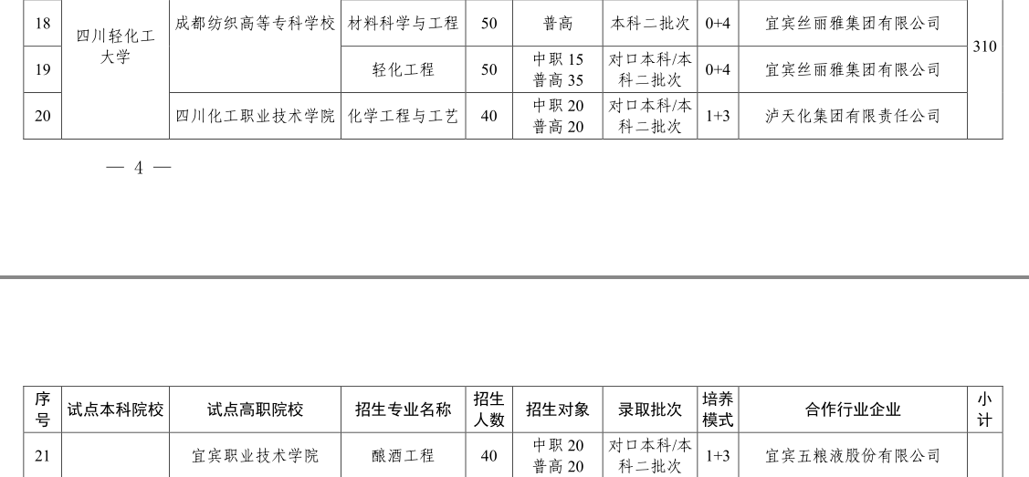 根据《四川省教育厅关于做好2022年本科层次职业教育人才培养改革试点项目的通知》(川教函〔2022226号)精神,我院酿酒技术专业与四川轻化工大学、宜宾五粮液股份有限公司联合开展2022年酿酒工程本科层次职业教育人才培养改革试点工作,招生人数40人。