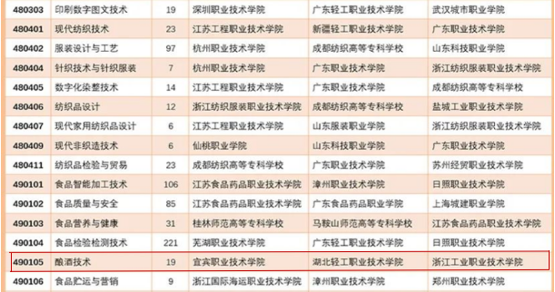 “金平果”高职专业排行榜,酿酒技术专业全国排名第一