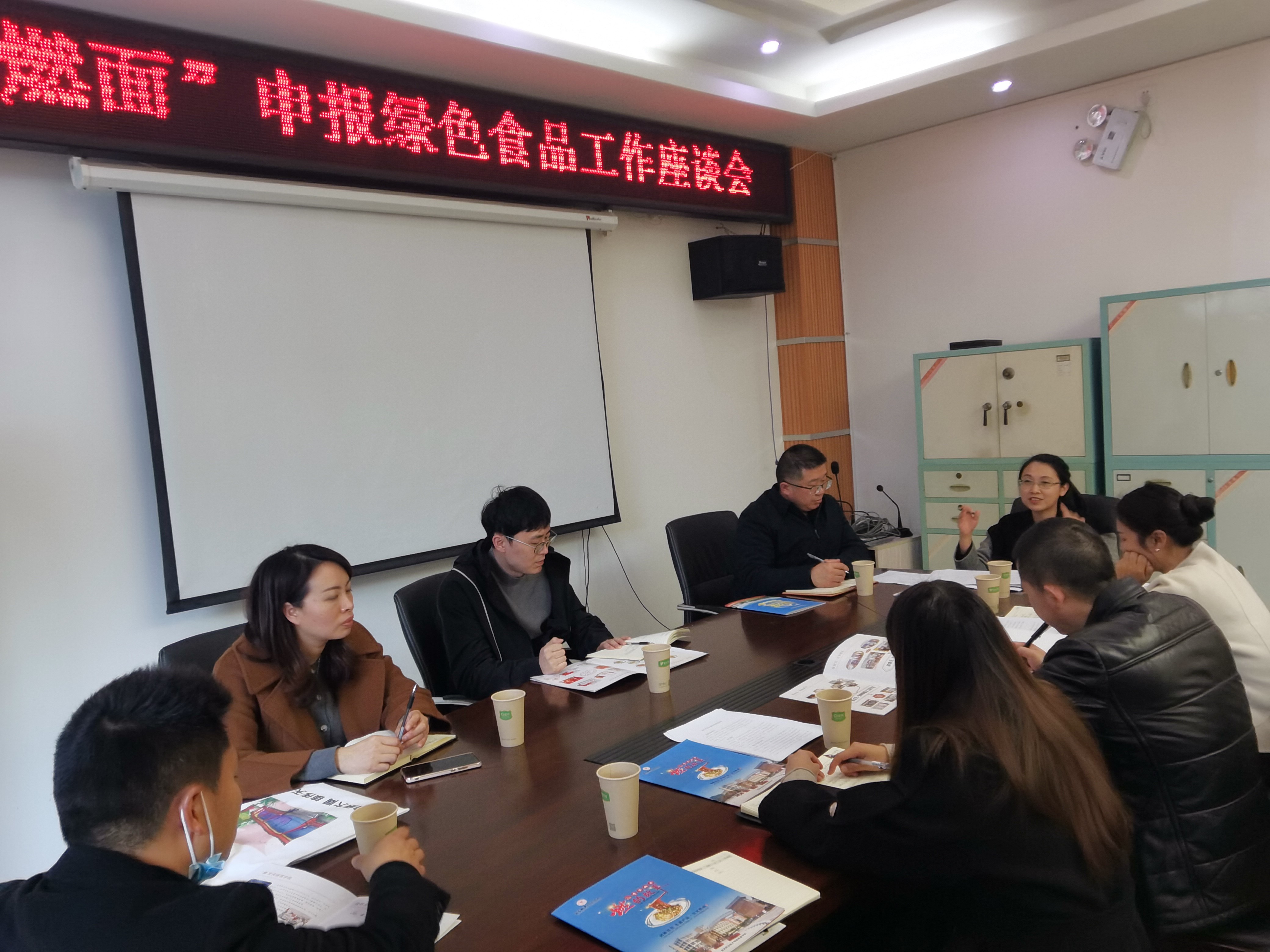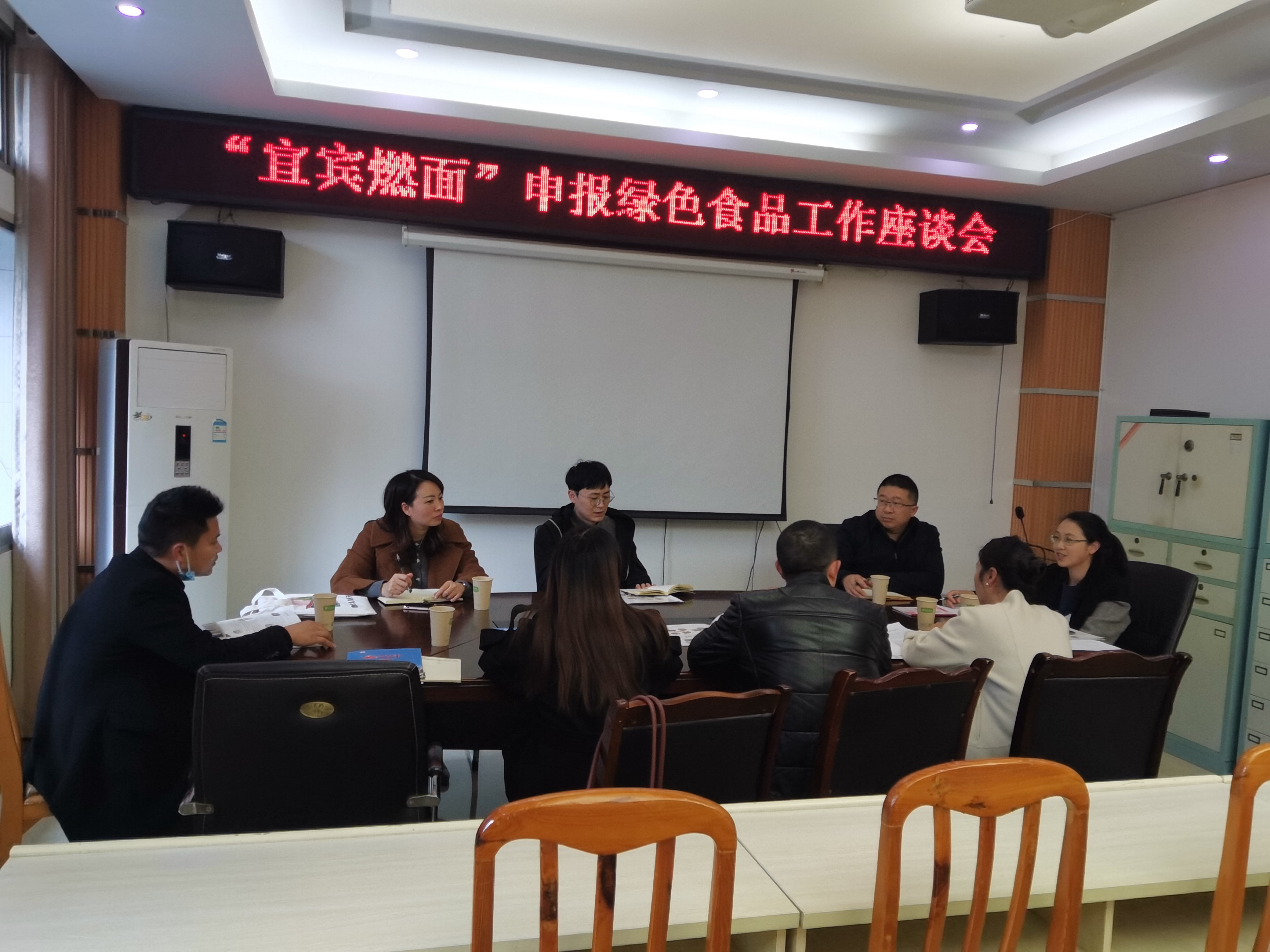 228日下午3点,宜宾市农业农村局五楼会议室,食品教研室教师在梁宗余副院长的带领下到宜宾市农业农村局农产品质量安全监管科对接宜宾燃面绿色认证工作,参加座谈的有市局分管领导和农产品质量安全监管科曾迪科长等,宜宾职业技术学院五粮液技术与食品工程学院梁宗余副院长,经资公司母祥龙,食品教研室彭春芳、尚娟芳和罗鸣老师。