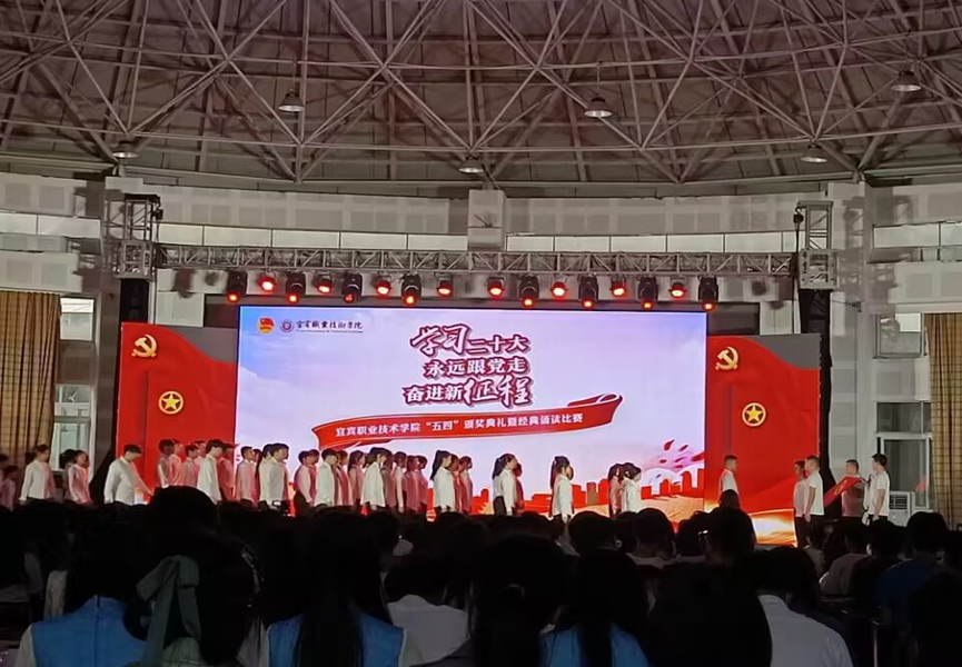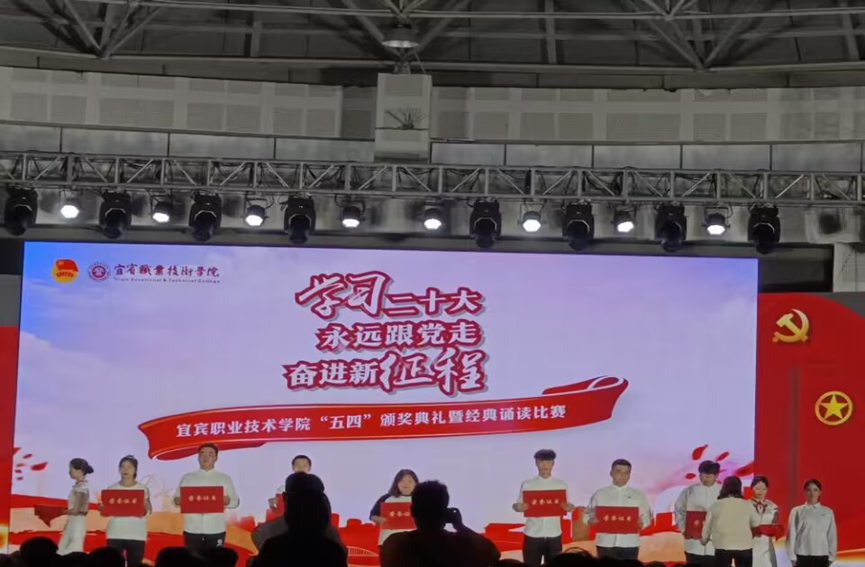 为深入贯彻落实党的二十大精神,纪念“五四运动”104周年,进一步推进书香校园建设,引导学生了解中华民族的灿烂文化,增强民族自豪感,培养有理想、有道德、有文化、有纪律的社会主义合格建设者和接班人,宜宾职业技术学院于2023512日下午7点,在B区活动中心开展“五四”颁奖典礼暨读书月经典诵读比赛活动。