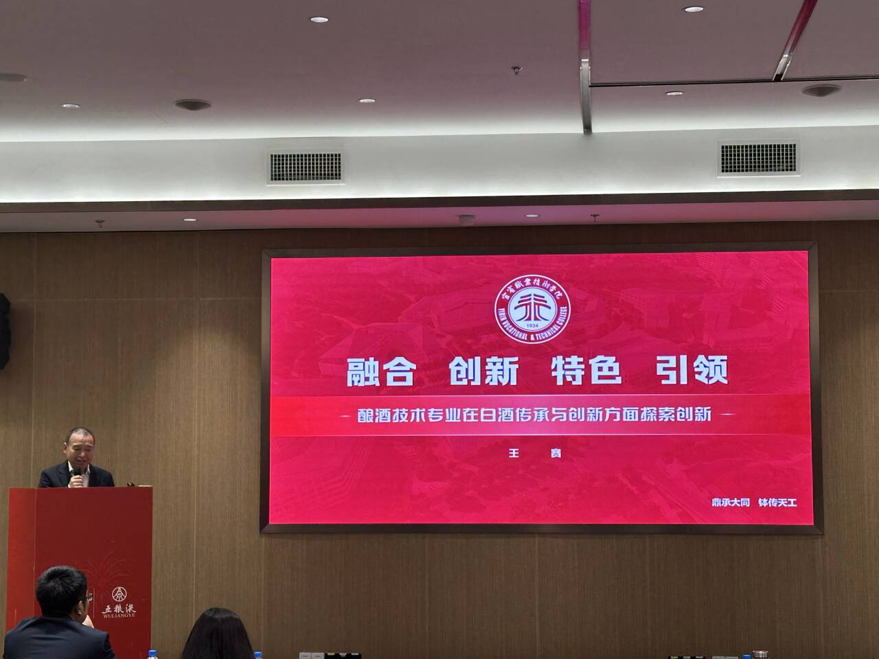 五粮液技术与食品工程学院院长王赛汇报并分享了宜宾职业技术学院酿酒技术专业在白酒传承与创新方面探索和创新,指出酿酒技术专业的高质量发展必须聚焦教师队伍建设和产教深度融合。