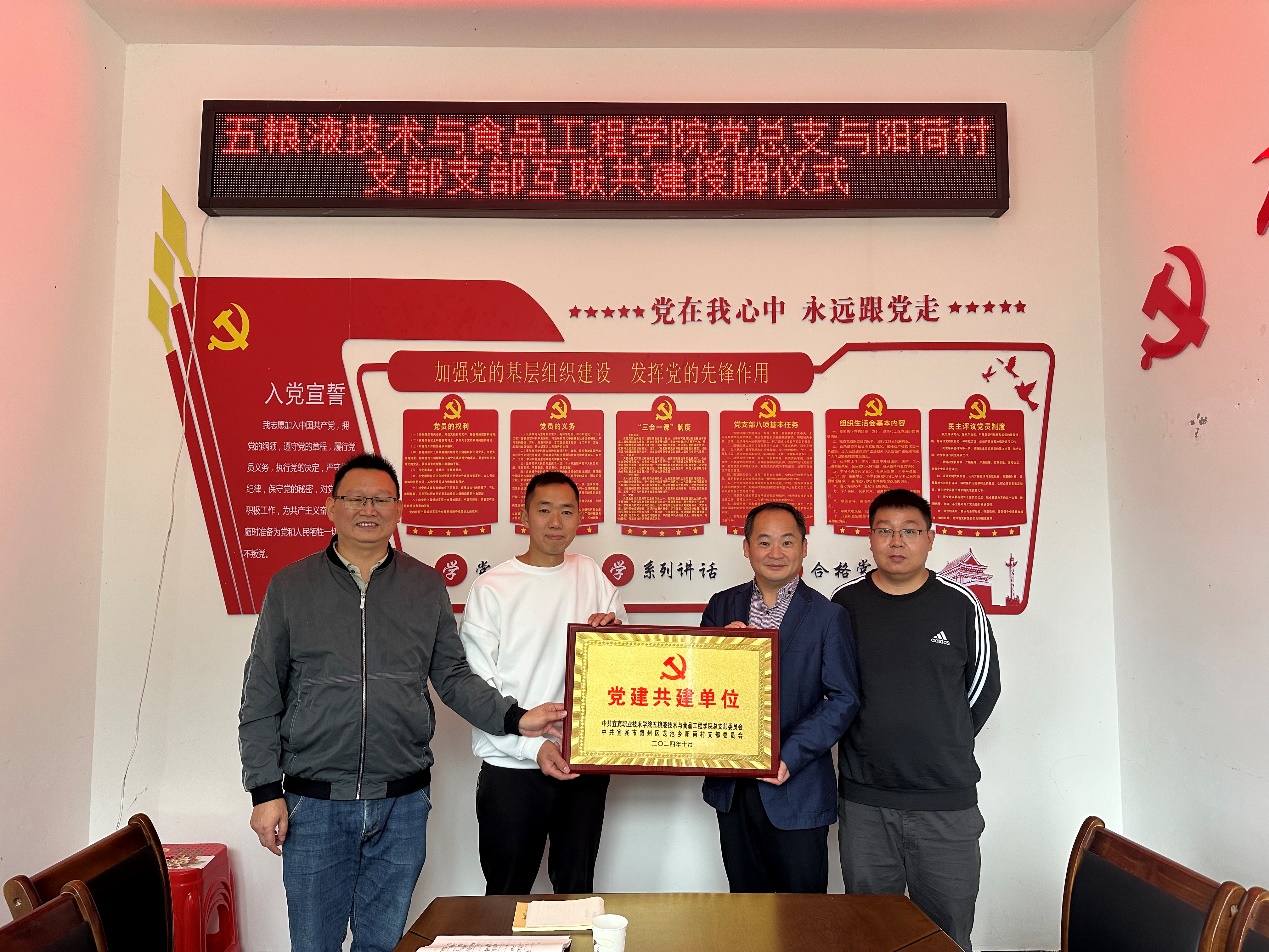 会上进行了我院五粮液技术与食品工程学院党总支与阳荷村党支部互联共建授牌仪式。