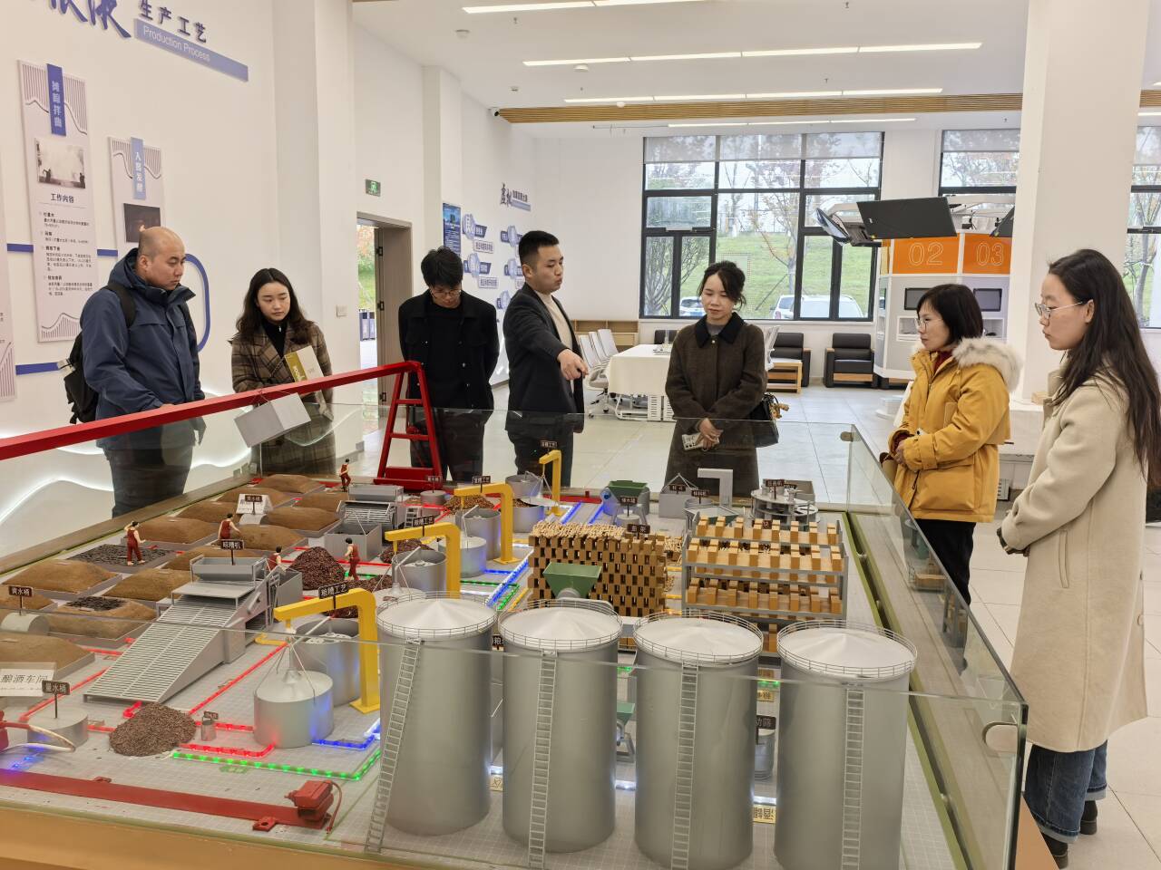 最后,四川化工职业技术学院川酒学院副院长哈霞一行参观了宜宾燃面学院、“匠心善酿”虚拟仿真实训基地及五粮坊。
