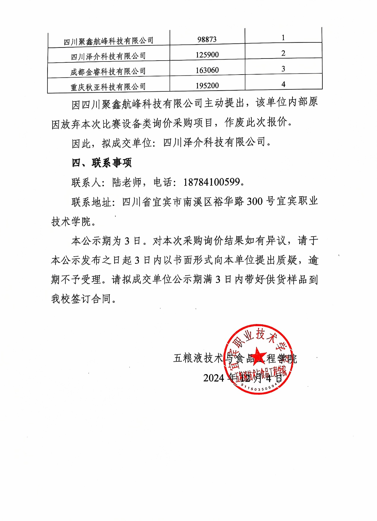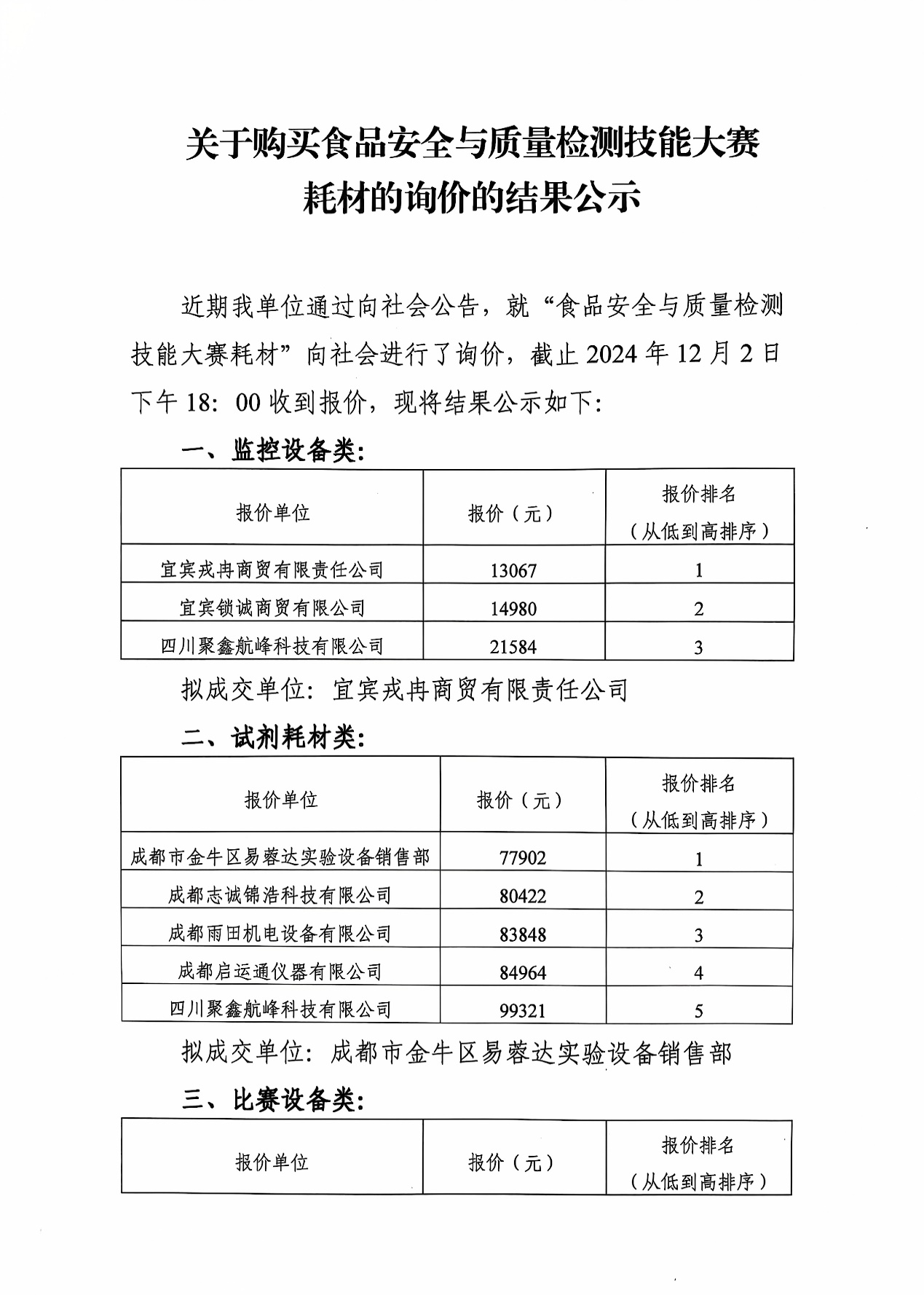 关于购买食品安全与质量检测技能大赛耗材的询价的结果公示