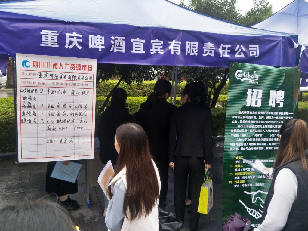 2019年10月26日,来自宜宾、泸州的酒企来到学校进行现场招聘。