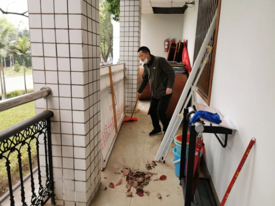 上午9时许,五粮液技术与食品工程学院全体教职工按照既定的工作方案奔赴各自所负责的片区进行卫生劳动。一时间,办公楼及室外公共区域处处可见大家劳动的身影,有的忙着整理办公室,有的忙着拖地擦窗,有的忙着清理枯枝落叶……