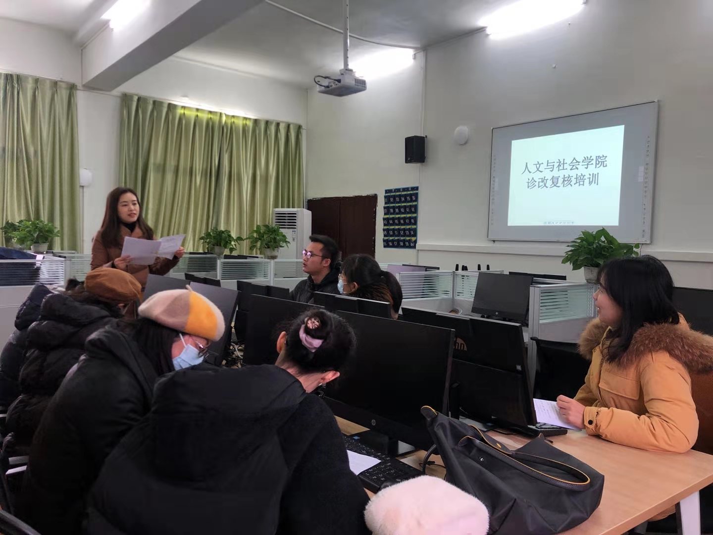 为强化人文与社会学院教师和学生质量意识和诊改思维,为迎接宜宾职业技术学院内部质量保证体系省级现场复核做好准备,按照学院诊改复核工作方案有关要求,2020年12月14日上午,人文与社会学院在第一实训楼南楼文秘、人力综合实训室召开诊改复核专题培训会,会议由人文学院副院长(主持工作)王岚主持,全体教师参会。