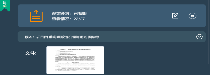 2、建立课堂教学。为切实提高线上教学质量,加强学生对该课程的理解程度,在上课前1天,提前布置课前预习作业,导入上课PPT课件、教学视频和相关学习论文并备课,布置课后作业。督促学生每日关注钉钉群消息和云课堂智慧职教客户端发布的课前作业、课后作业等通知,课前预习学生完成情况相对较好。