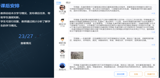 根据学生的现有果酒酿造技术基础知识以及线上教学的特点,采取“以学定教”的学习形式。老师综合资源精心布局、利用网上各类优秀资源、视频、论文、案例等,让学生自主学习某一专题内容,然后通过讨论、随机提问、抢答、头脑风暴、课堂测验、小组PK等方式在线上讨论交流学习结果,或者随机连线学生考察学生学习情况,教师根据学生的学习情况进行小结提炼。在课前要求学生课堂上准备笔记本和笔,学习过程中及时记录笔记,掌握课程的重难点。为加强课堂节奏把握,讨论环节采用了先讲解,后思考,再切换平台展开讨论的模式,边学习边讨论,充分带动学生学习积极性。