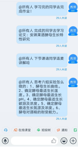 为深入贯彻习近平总书记关于做好新型冠状病毒感染肺炎疫情防控工作系列重要指示精神,全面落实疫情期间教学工作,切实做到停课不停学,减少疫情影响, 2019-2020年度第二期《果酒生产技术》课程在钉钉、云课堂智慧职教平台进行线上教学已经六周了,上课教师为李秀萍老师。在这六周内,就如何提升线上教学的质量和有效性,李秀萍老师积极探索线上教学策略,竭尽所能尽快掌握线上教学精髓,助力学生更快、更好扎实地掌握知识点。逐渐形成了一套属于自己的线上教学方法,其线上特色是: