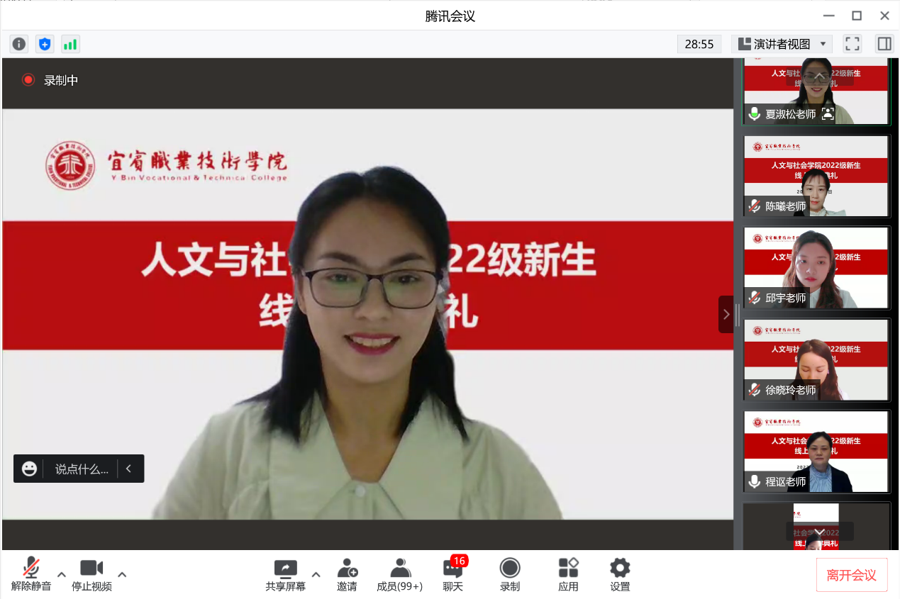 根据近期宜宾市及学院疫情防控政策的有关要求,9月21日上午,人文与社会学院以线上形式隆重举行2022级新生开学典礼,对310名人文“萌新”开展入学教育。人文学院党政负责人、全体教师参加本次开学典礼,典礼由人文学院副院长兼党总支副书记(主持工作)黄恋主持。