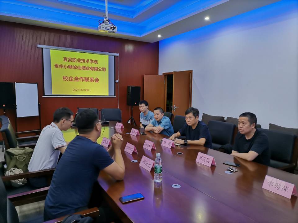 2021年5月25日,贵州小糊涂仙酒业集团有限公司人力资源部经理叶红海,贵州小糊涂仙酒业有限公司土城基地人力资源部总监刘云生等一行4人来到学院洽谈校企合作相关事宜。学院参加接待的人员有学院党总支书记成洲、学院副院长梁宗余、酿酒技术专业主任辜义洪和专业教师李秀萍、江鹏、张敬慧。