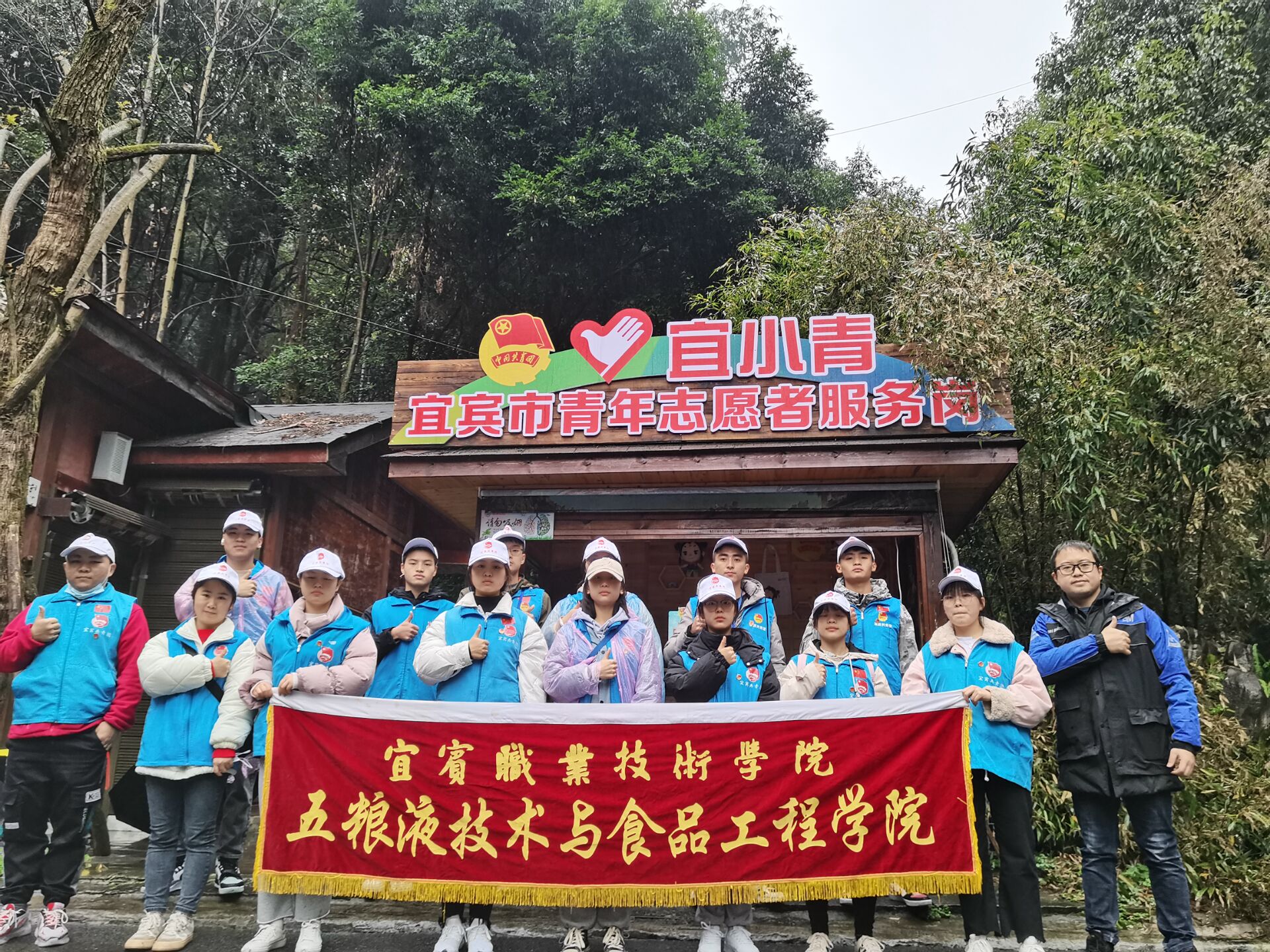 12月11日早上7:40五粮食品学院翠屏山文明劝导志愿者服务队15人在门口集合由张小钢老师带队向翠屏山出发。