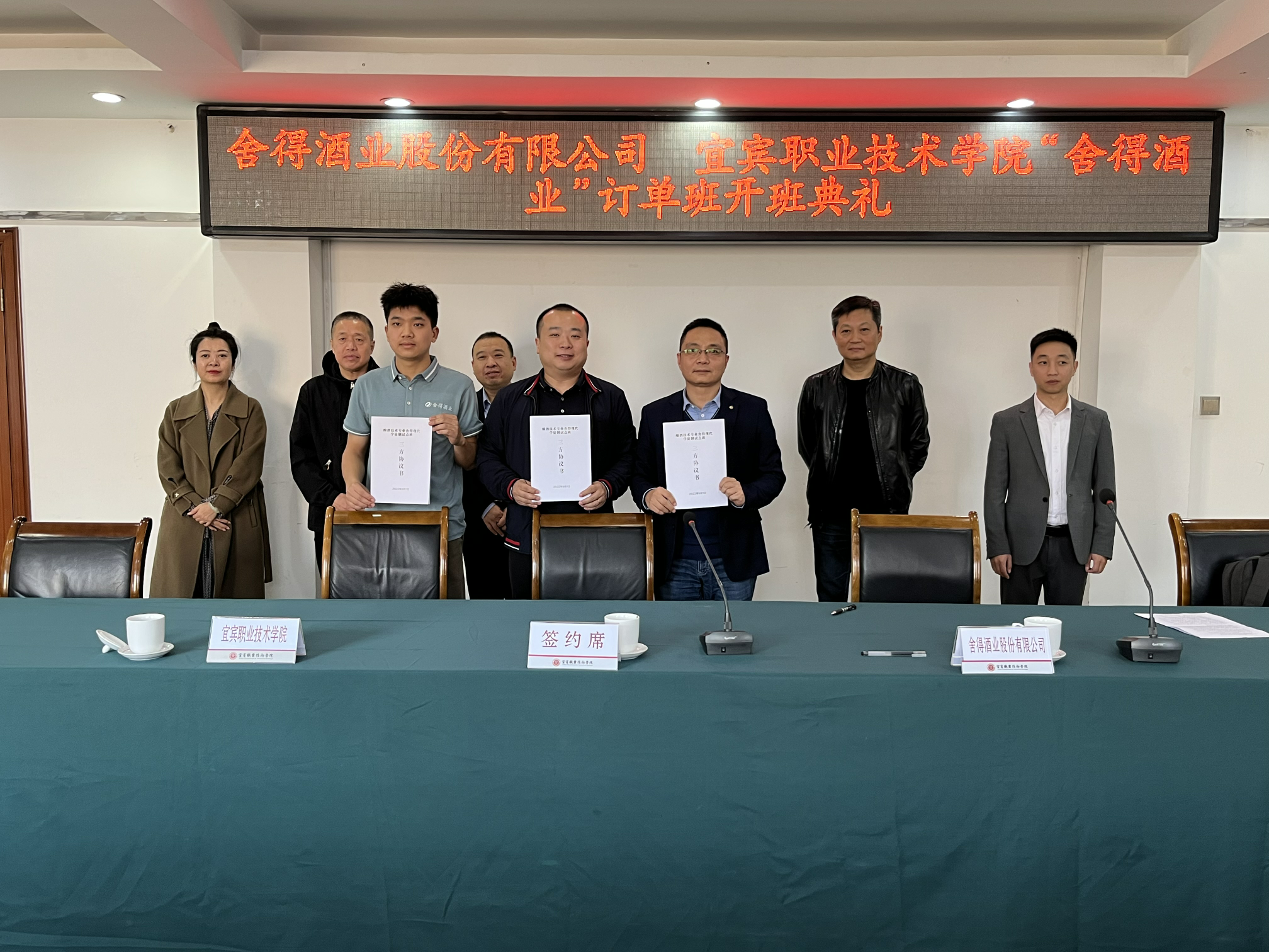 会上,王志刚副院长为舍得酒业产业导师颁发了聘书。王志刚副院长代表学校、闫德民副总经理代表企业和学生代表共同签订了三方协议。