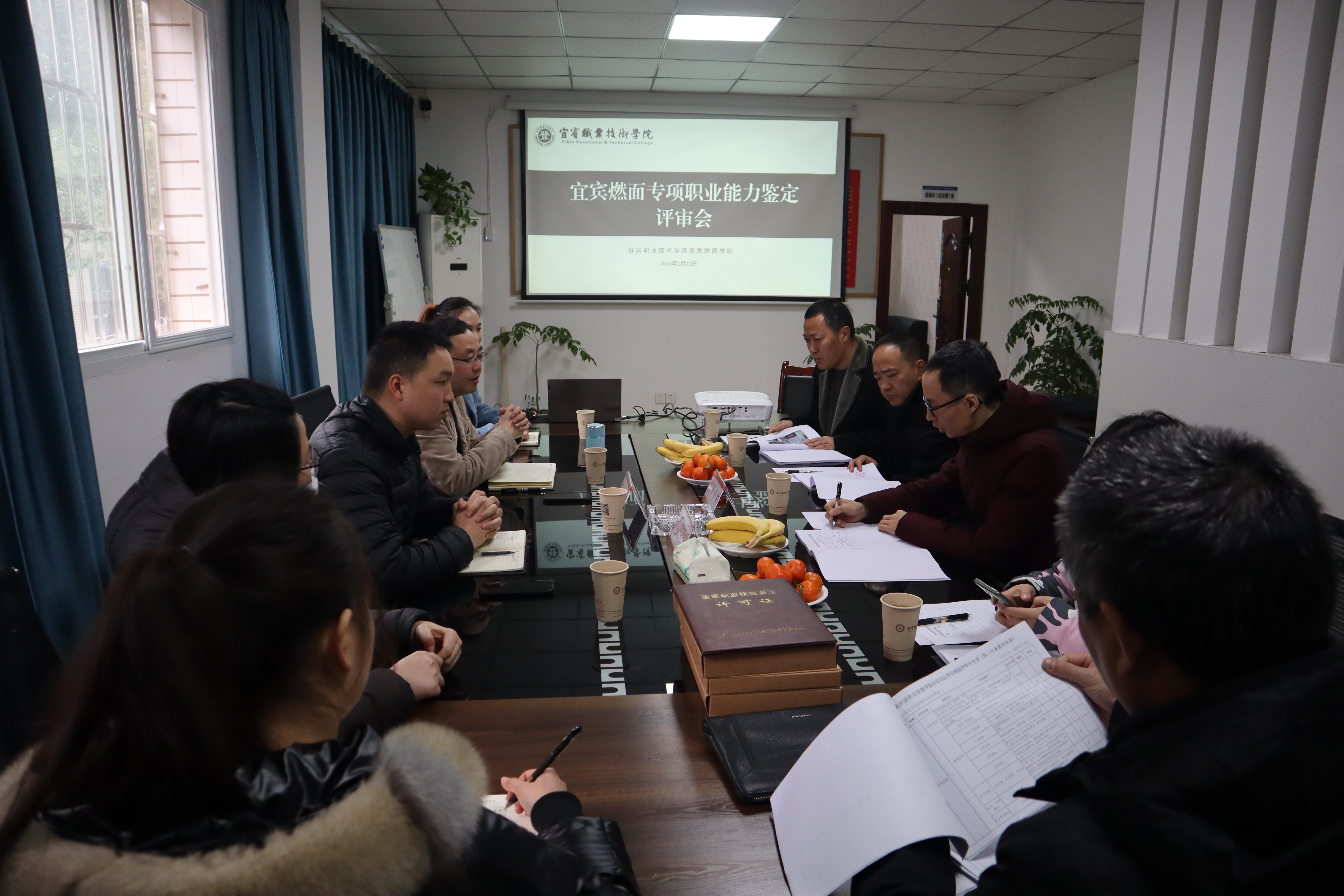 2022年1月21日,宜宾市职业技能鉴定指导中心廖常率评审组莅临宜宾燃面学院,开展燃面专项职业能力考核资质评审。评审组一行严格按照国家专项职业能力考核规范开发规程要求,对专项职业能力考核资质申报材料和宜宾燃面学院人才培训基地进行实操场地考评。