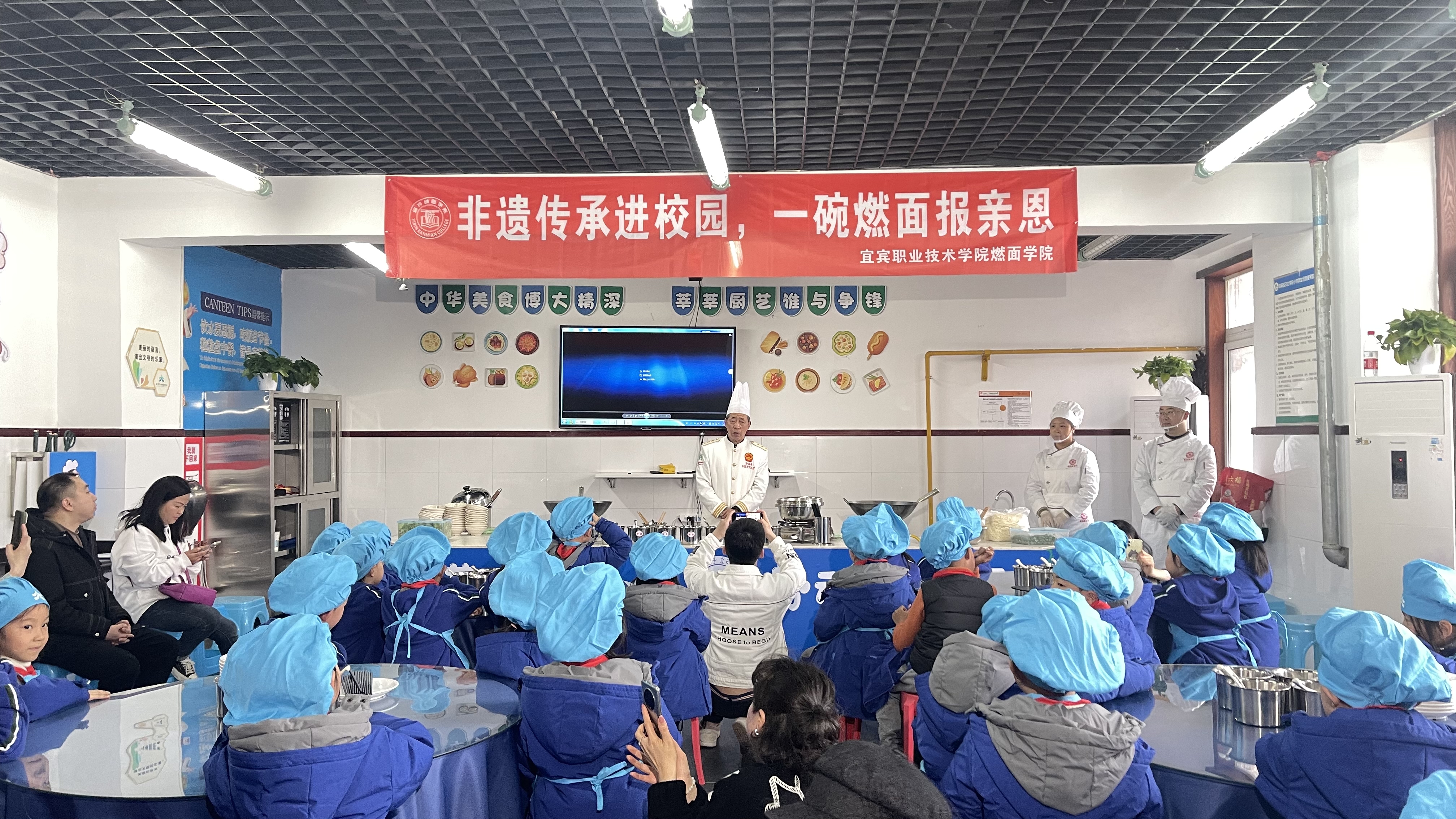 2023年2月27日,以传承和保护非物质文化遗产宜宾燃面为重点,以丰富多彩、积极向上的校园文化活动为载体,宜宾燃面学院在宜宾市翠屏区天立学校开展了以“非遗传承进校园 一碗燃面报亲恩”为主题的非遗传统技艺宜宾燃面进入校园活动。